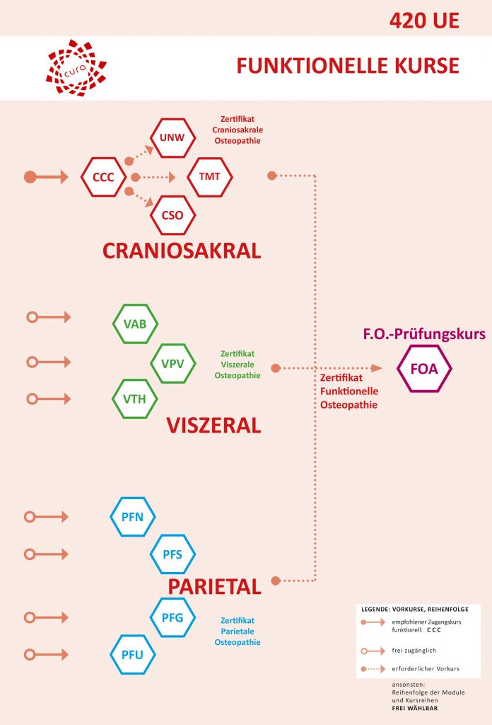 Sie entscheiden flexibel, ob sie mit der manualtherapeutischen Ausbildungoder mit den Funktionell Osteopathischen Kursreihen (Craniosakrale, Viszeralen, Parietale Osteopathie) bei Cura ihre MTFO Kombi Ausbildung beginnen.